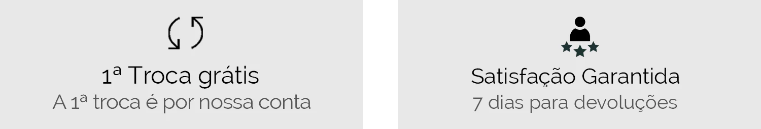 A primeira troca é por nossa conta! Cuidamos de todos os custos de envio para tornar sua experiência ainda mais fácil e segura.